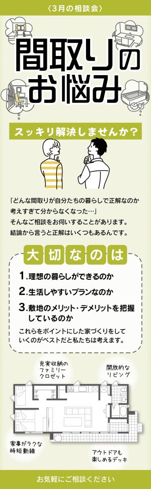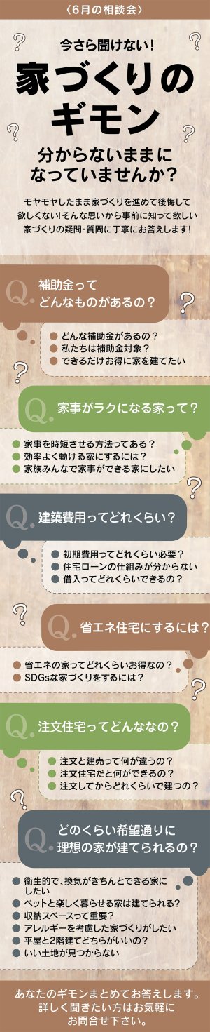 地震や台風などの自然災害、防犯面の不安を解消したい方へ。災害に強く、防犯性にも優れた“安心して暮らせる家づくり”のポイントを専門家がわかりやすく解説します。家族の安全を守る住まいづくり相談会、開催中です。